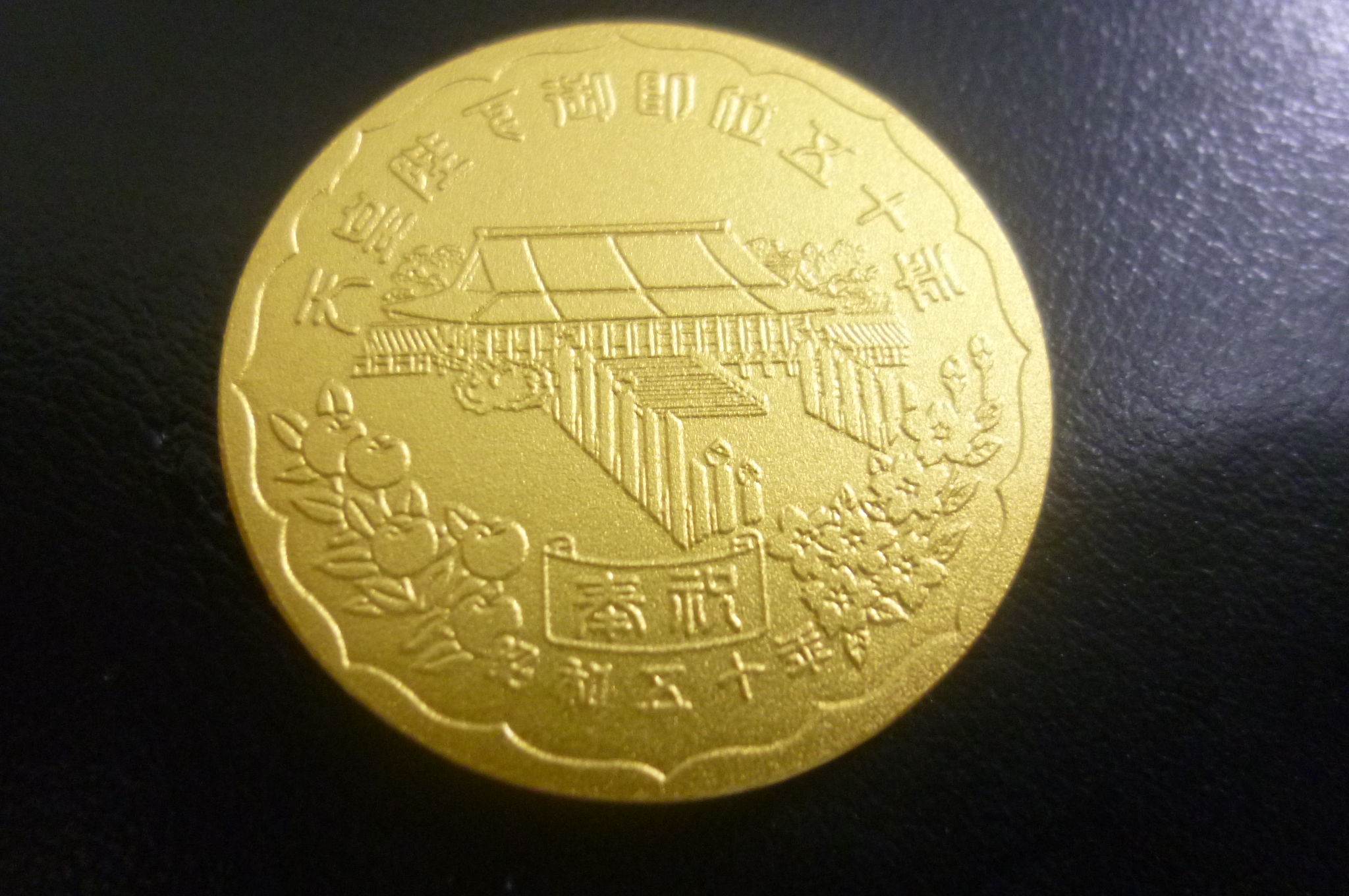 こちらのお品、天皇陛下御即位50年記念金貨でございます。
