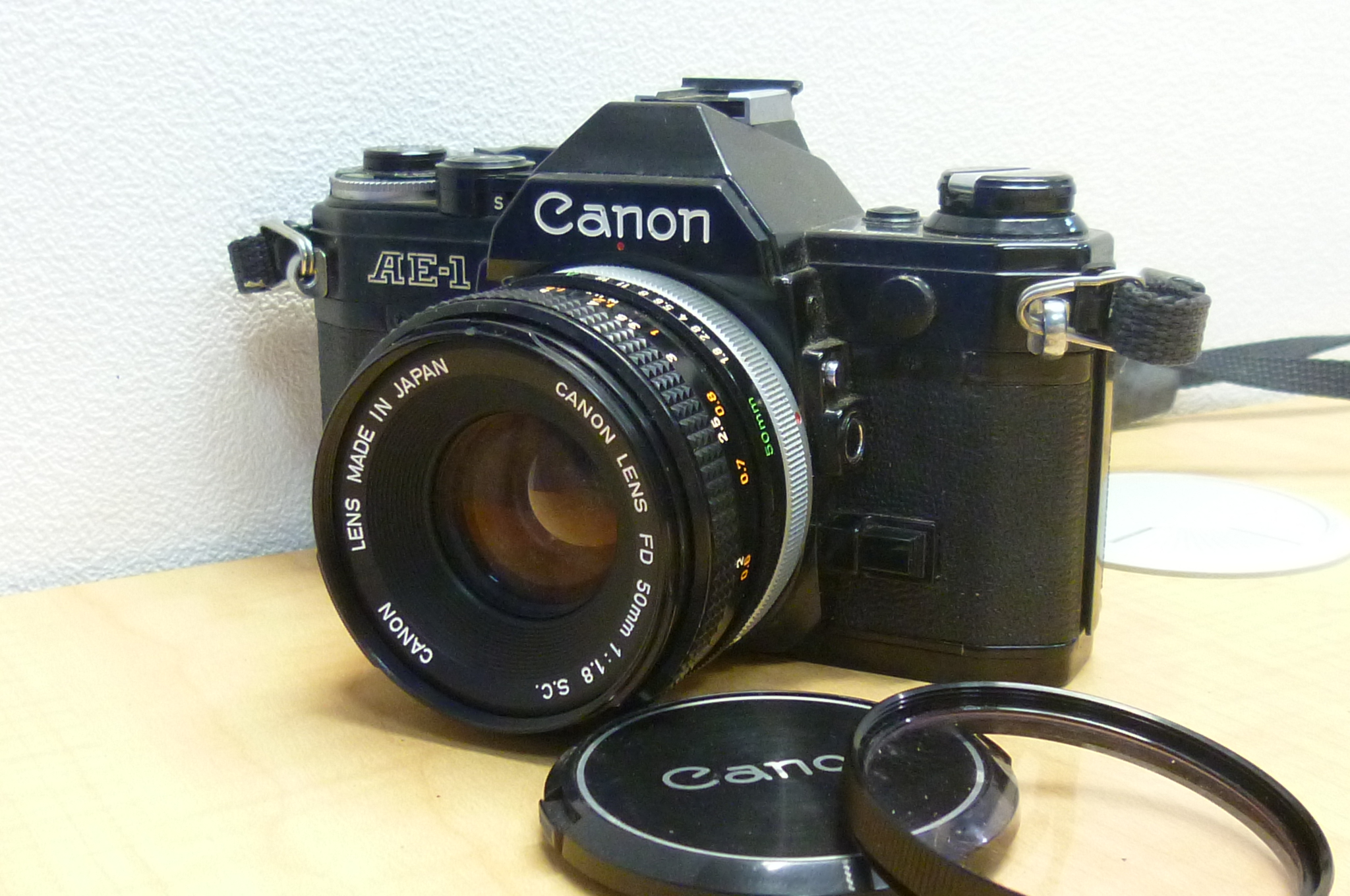 こちらのお品、Canon AE-1 黒ボディ レンズ FD 50mm 1:1.8 SCでございます。