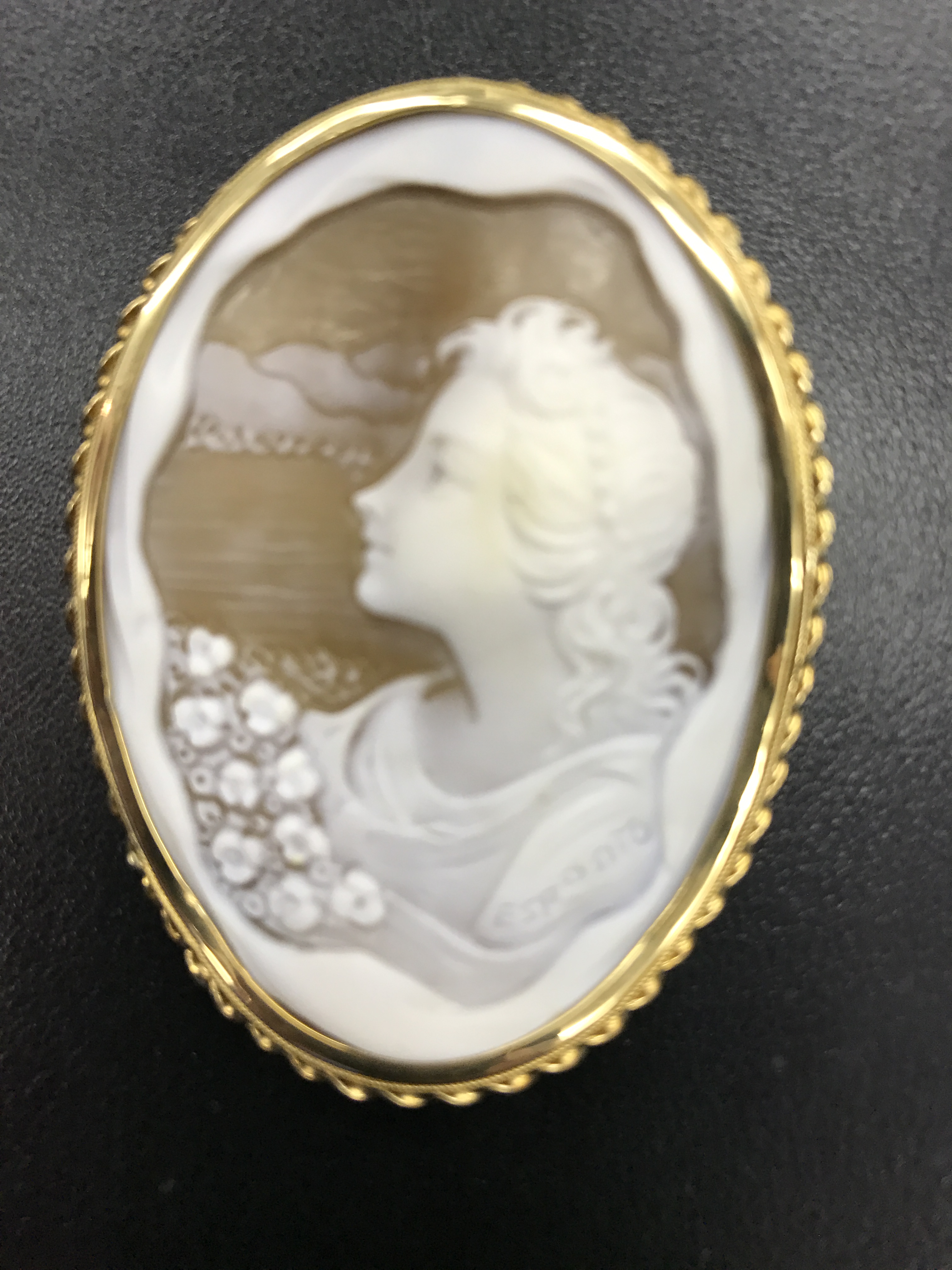 カメオのブローチは18金の枠が