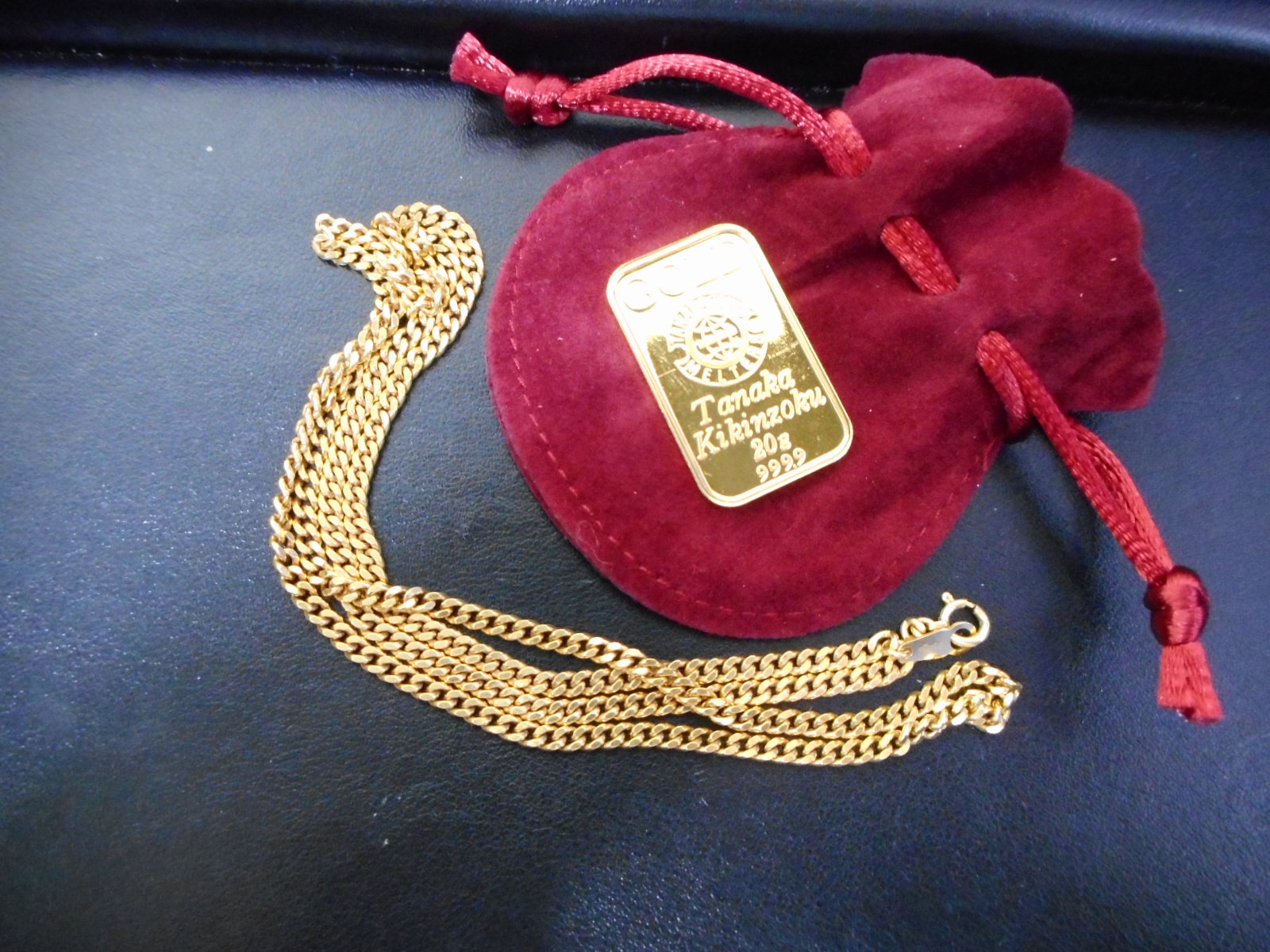本日は開店を待つかのように朝一番金のインゴットに金のネックレスを