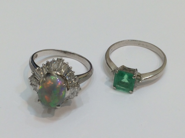 写真はエメラルド付リングとオパール&メレダイヤ付リングです。