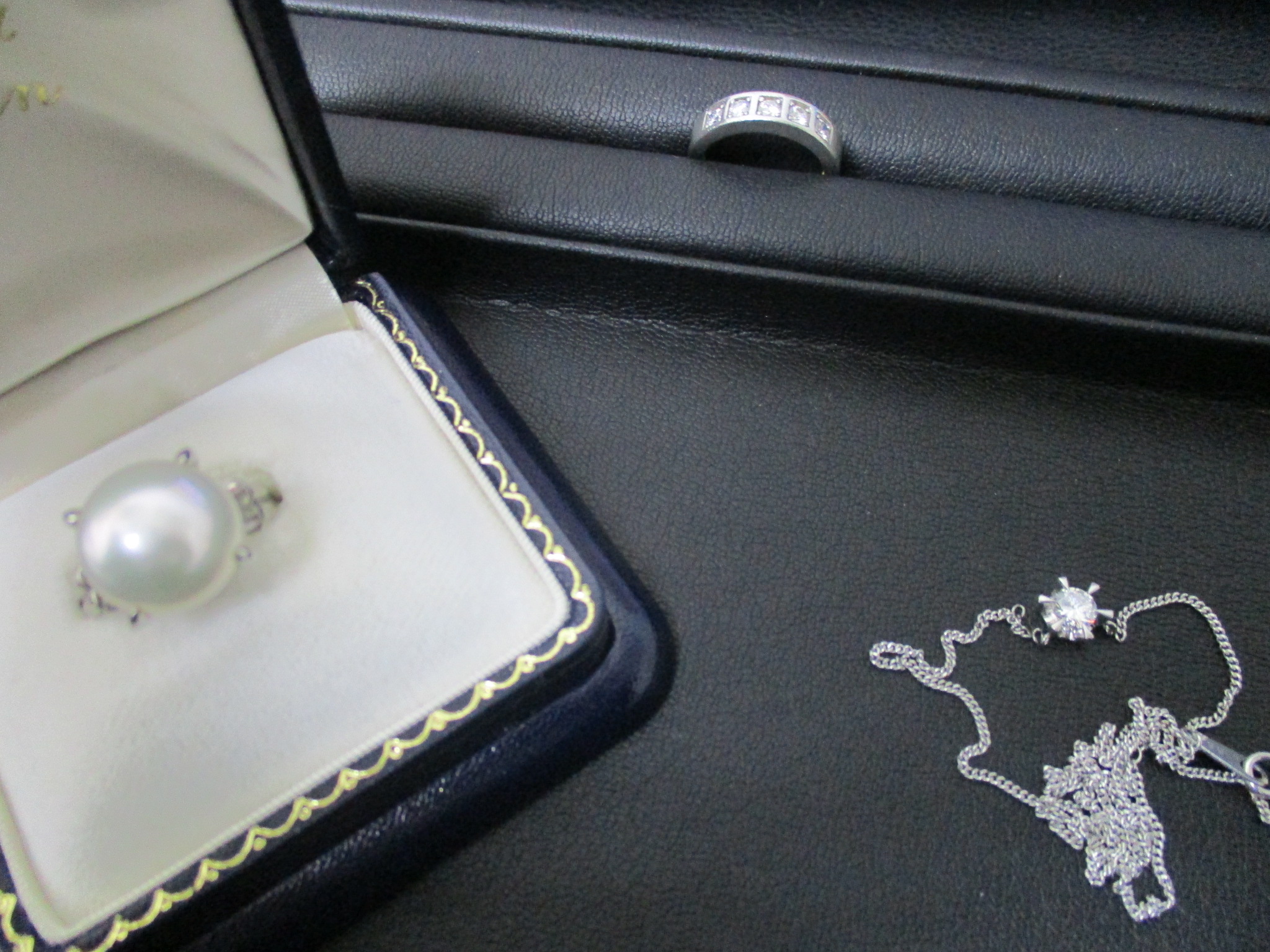 当店は、ダイヤ・貴金属・アクセサリーのお持ち込みが非常に多く、本日も新規のお客様からのプラチナ南洋真珠リング、プラチナダイヤネックレスをはじめ、多数のお客様からダイヤ・貴金属などを、ご満足価格でお買取させていただきました。
