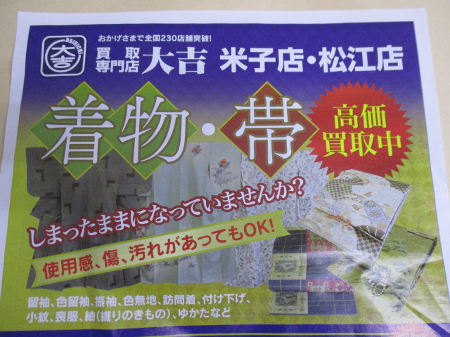 折込掲載 着物のお問い合わせ 多数ありがとうございます | 米子店