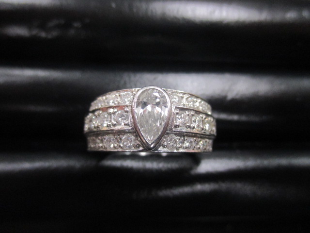 今日ご紹介する御品物はペアシェイプカットのダイヤがついたプラチナリングになります!