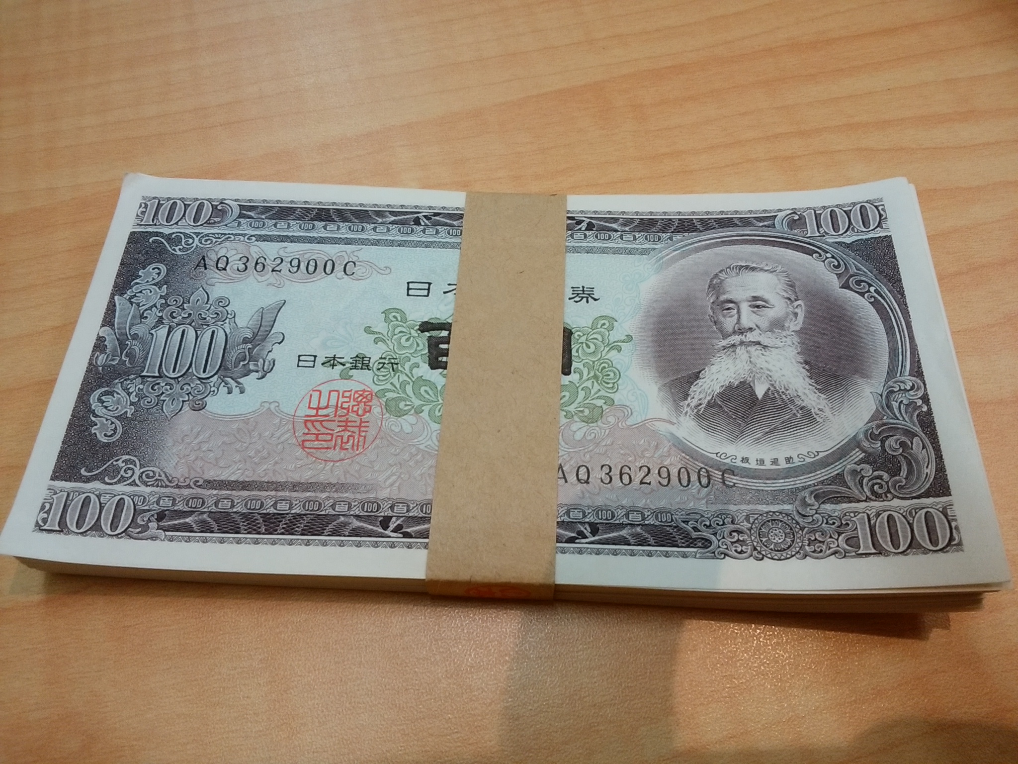 板垣退助の帯封の100円札です。