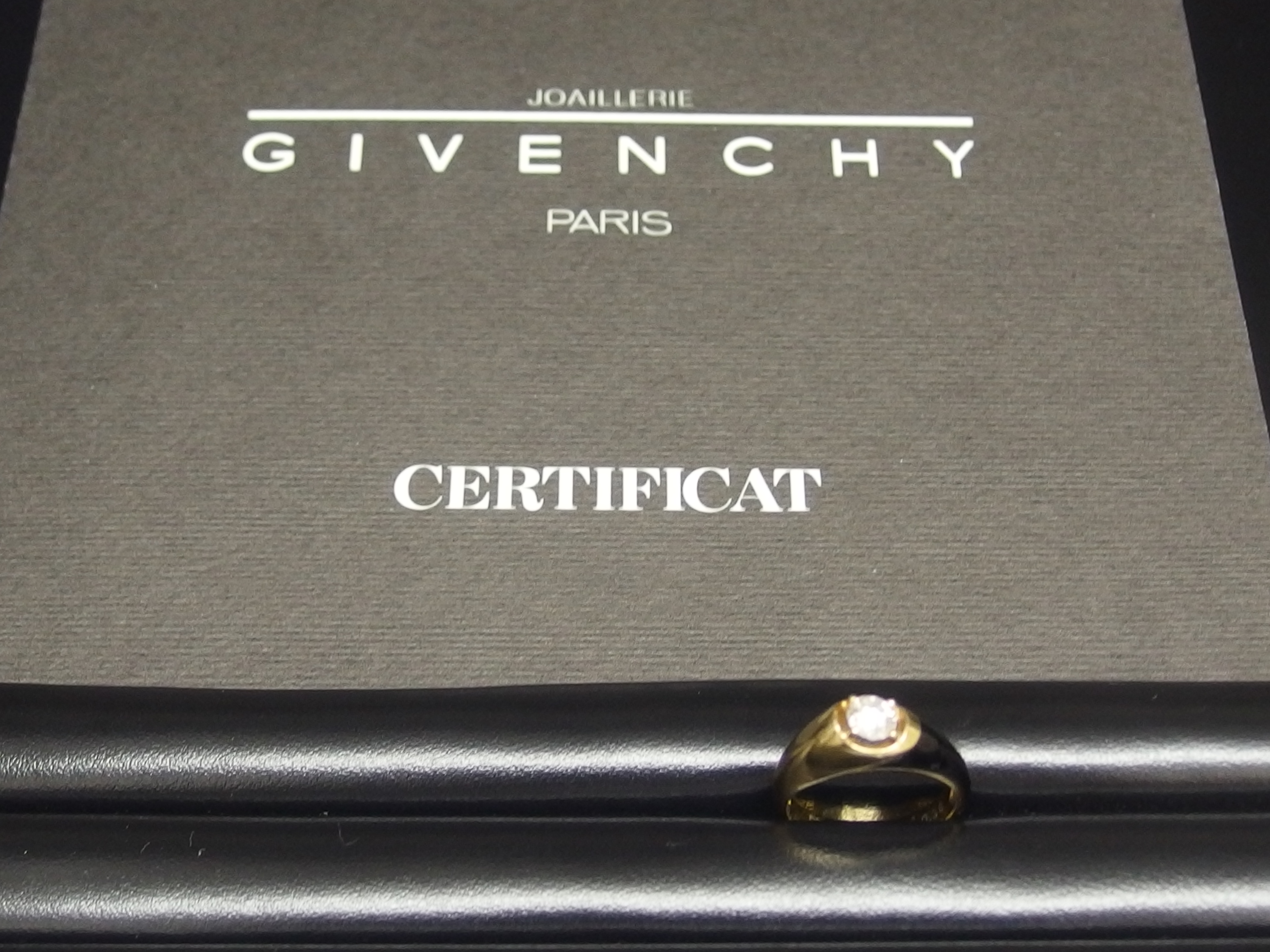 リングに大きな一粒石のダイヤモンドが付いている「GIVENCHY」のリングです。