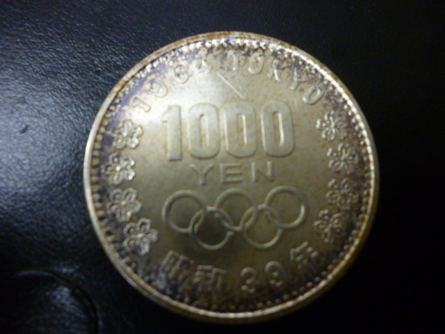 東京オリンピックの記念硬貨、こちらは1000円硬貨です。他に100円硬貨もお買取り品目としてはポピュラーです。