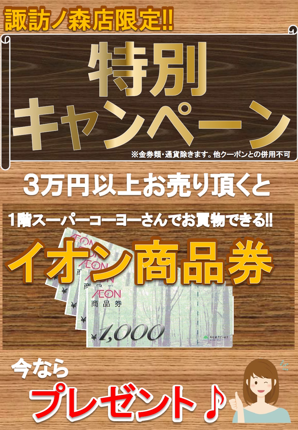 お買取り金額によりイオン商品券をプレゼント!