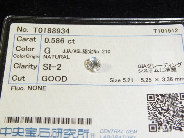 ダイヤモンド ルース 0.586ct 中央宝石研究所鑑定書付き をお買取りさせて頂きました。
