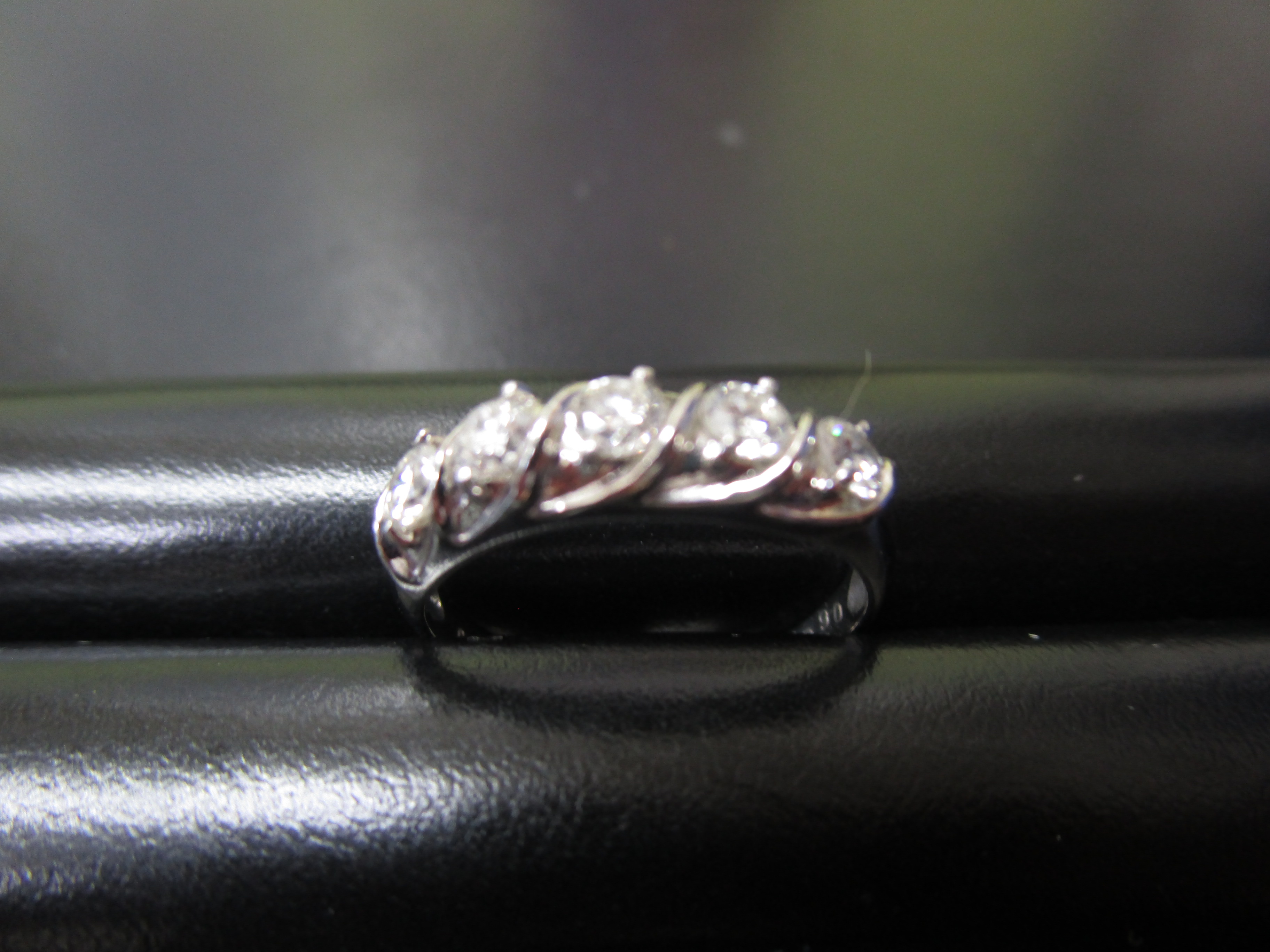 ご紹介のダイヤは大きさこそ控えめですが、ラウンドブリリアンカットが5粒。総計0.6カラットを超える、立派にダイヤのリングです。