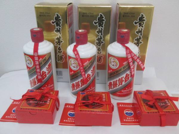 写真の商品は本日お買い取りした「貴州茅台酒 マオタイ酒 天女 500ml 43度 3本」です。