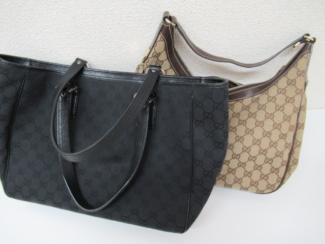 GUCCIの定番ラインGGキャンバスのトートバッグとハンドバッグのお買取りです。
