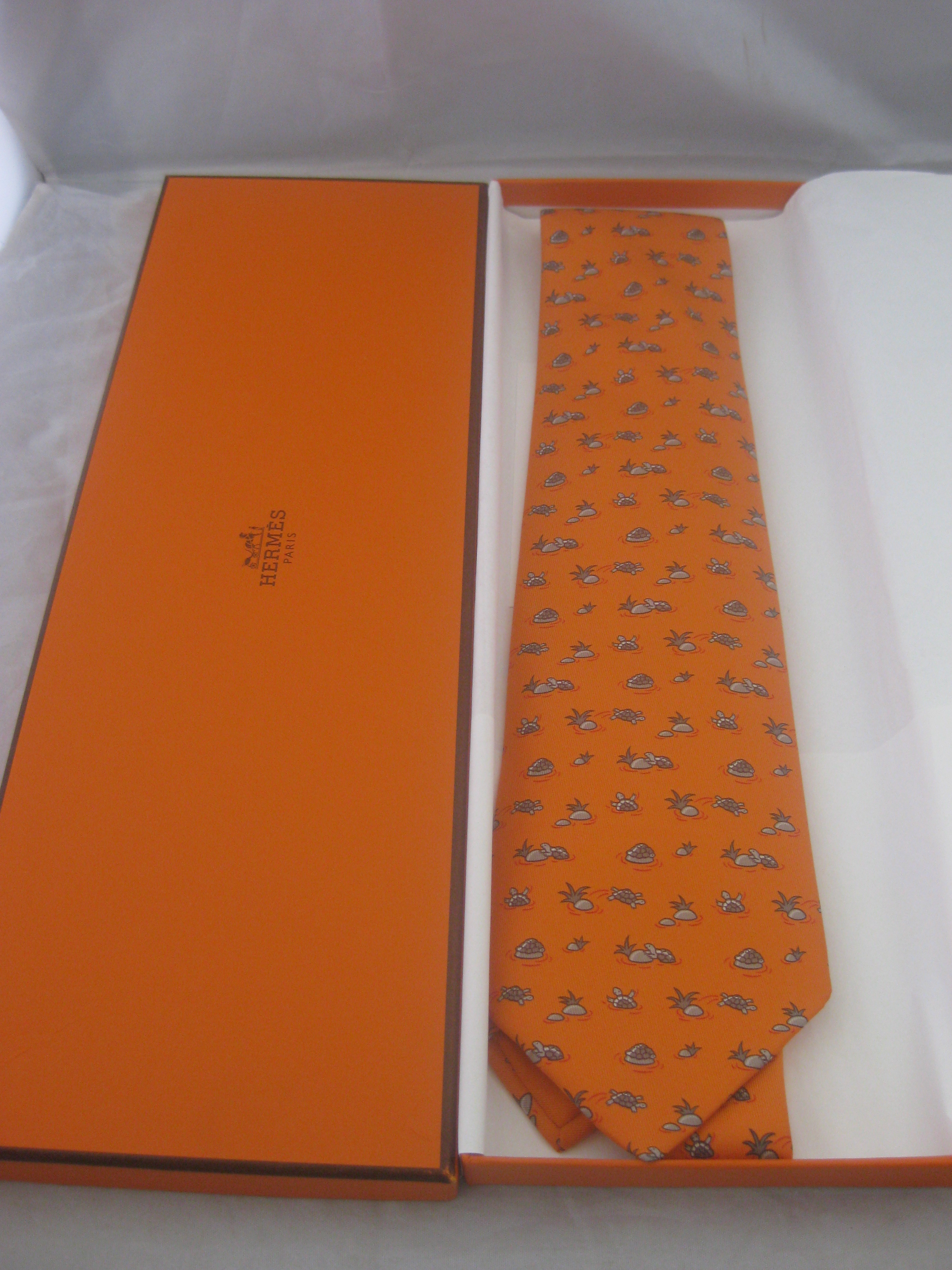 エルメスのネクタイ、箱付き未使用品になります。エルメスのバッグや財布などはもちろん小物、時計にスカーフなどいろいろお買取しています。