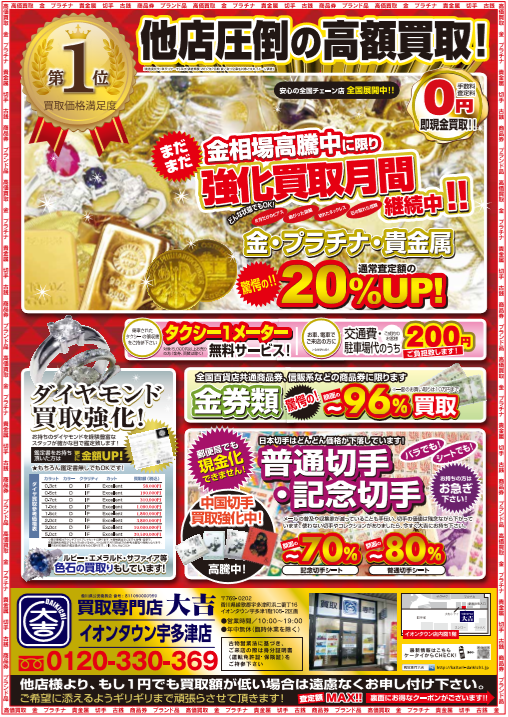 香川県で金、プラチナを売るなら、まず買取専門店大吉イオンタウン宇多津店!香川県で金、プラチナを売るなら、まず買取専門店大吉イオンタウン宇多津店!