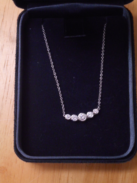 シンプルかつ煌びやかな印象のネックレスですね。