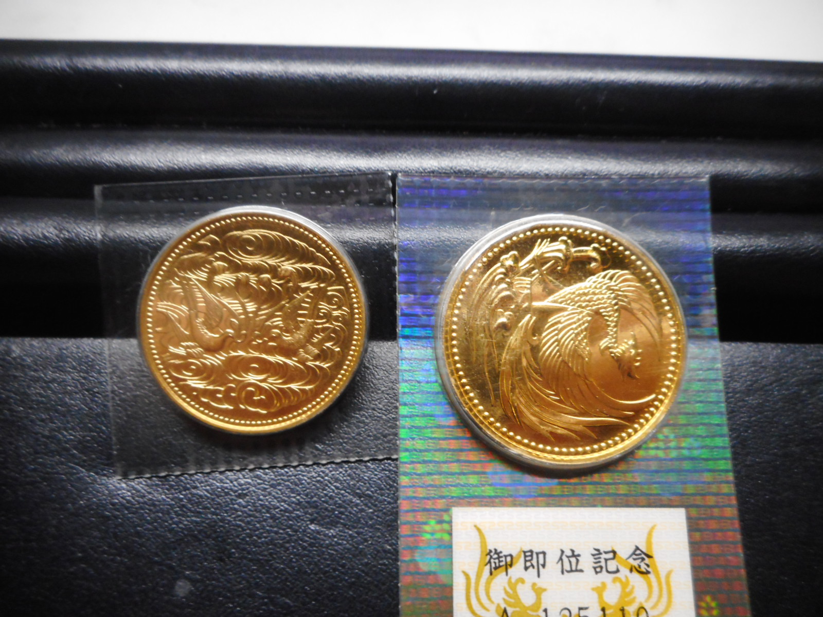 昭和天皇御在位60年記念・天皇陛下御即位記念の10万円金貨です。