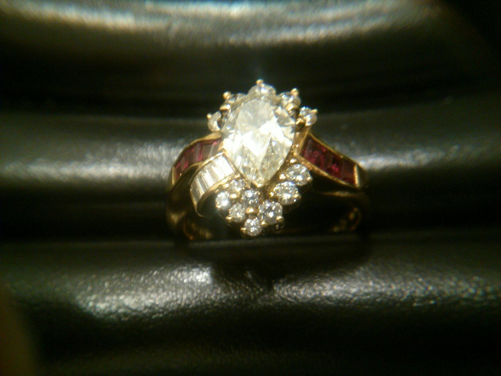 ペアシェイプラウンドブリリアントカットといいまして、カット面が多く優しい形をしているので優雅な印象を与えるダイヤなんです。