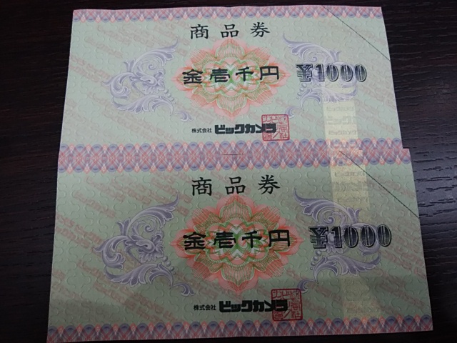 写真は、ビックカメラの商品券になります。