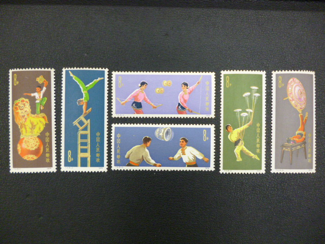 こちらの中国切手は6枚が1セットになっている「曲芸」と