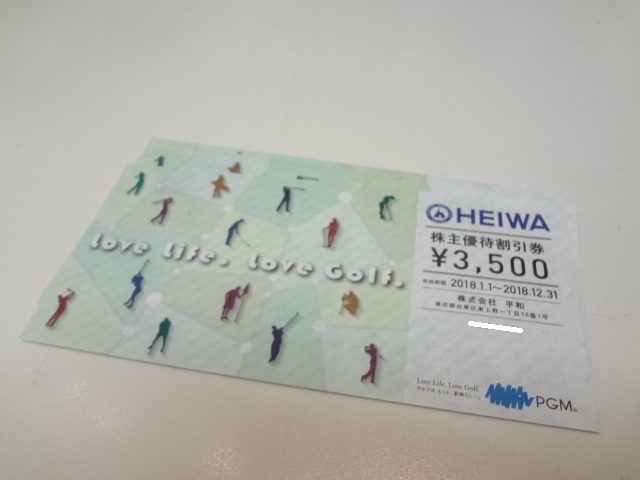 こちらHEIWA・PGMのゴルフ株主優待券をお買取り致しました♪また大吉ミレニアシティ岩出店では無料でお査定も致します♪