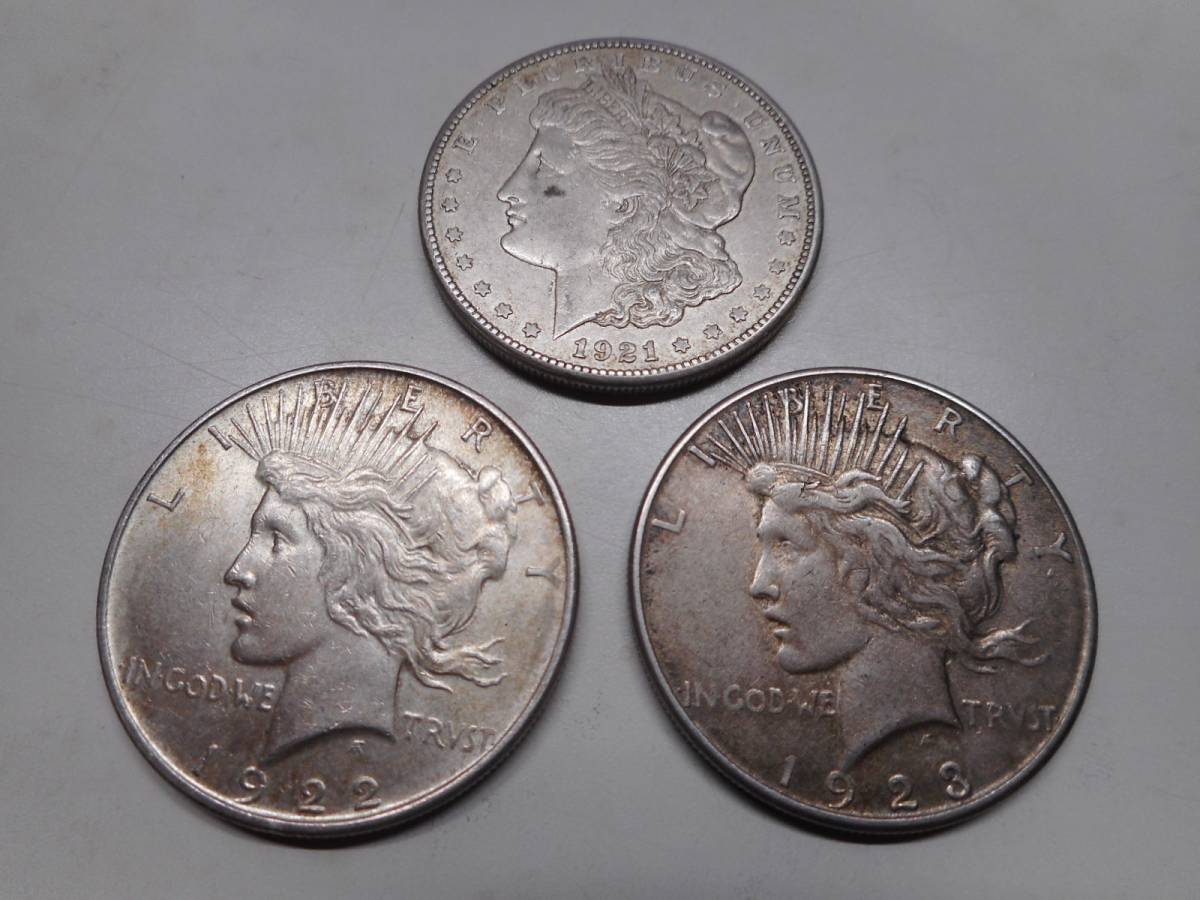 アメリカ 1921年モルガン1ドル銀貨+リバティ 1ドル銀貨 1922年・1923年