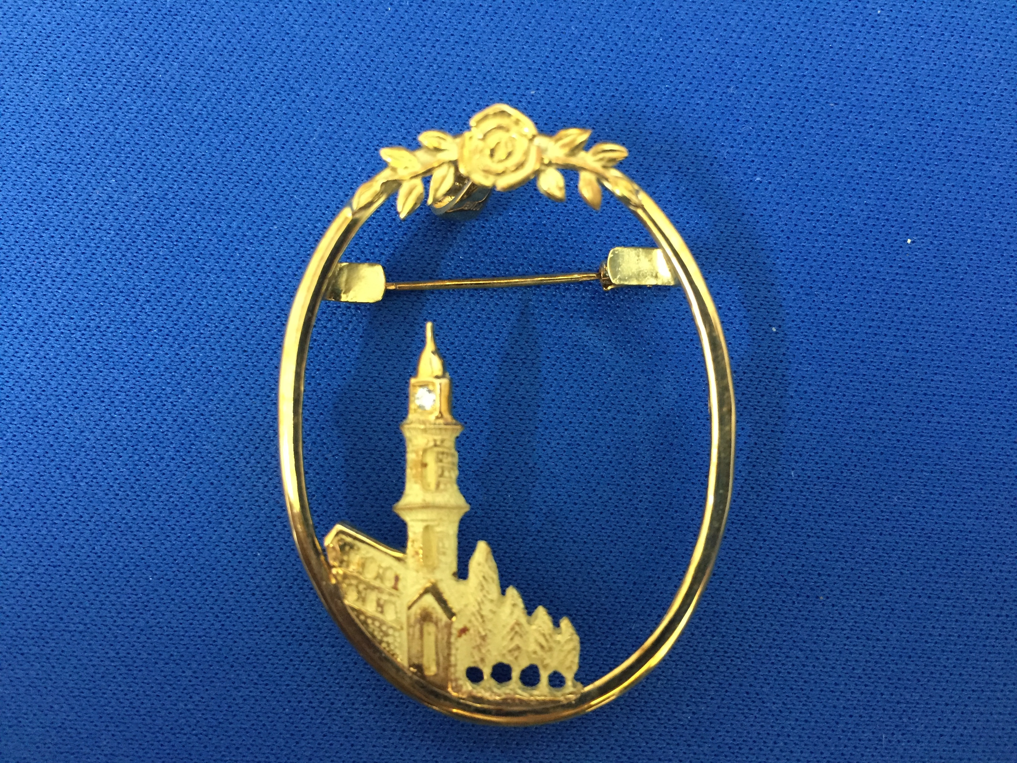 見にくいですが、ブローチの枠の中に塔がありますが、