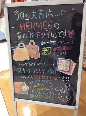 看板にある通り、3月の長岡京市大吉はエルメスの買取を超絶強化します♪