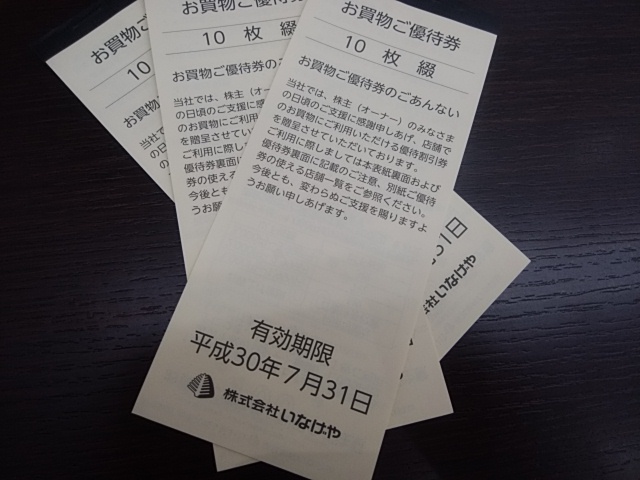 写真は、いなげや 株主優待券になります。