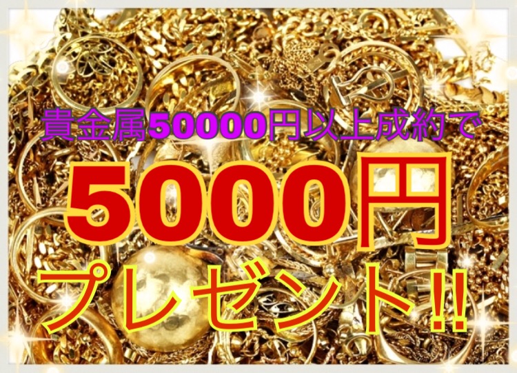貴金属50000円以上ご成約の方に5000円現金プレゼント!!