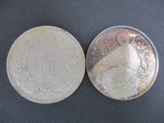 1円銀貨と、貿易銀をお買取り致しました。