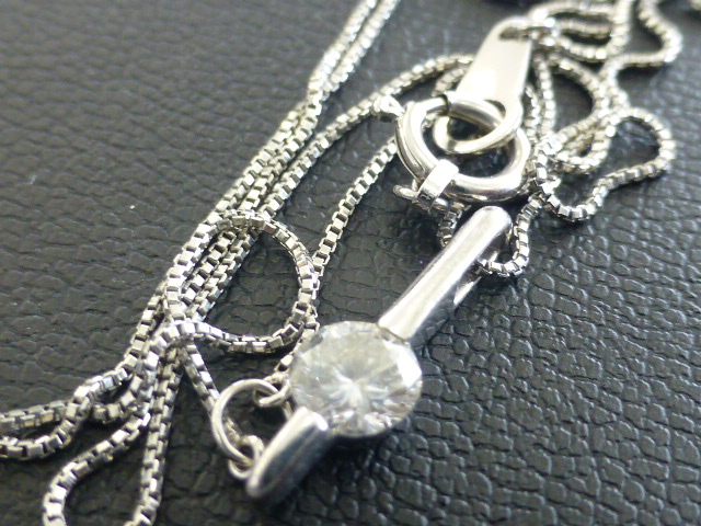 写真のダイヤモンドはプラチナのネックレスに付いている商品です。