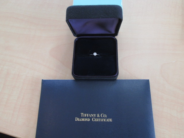 写真の商品は本日お買い取りした「ティファニー Pt950 リング 0.37ctダイヤ付き」です。