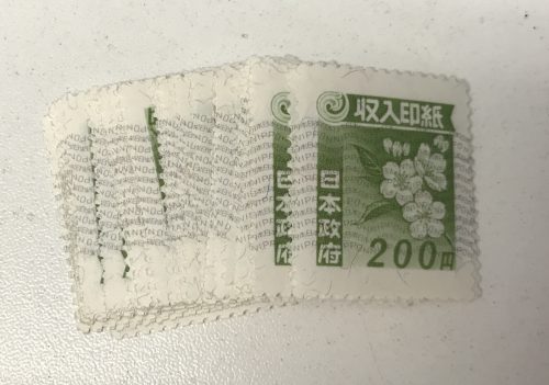 200円の収入印紙を横須賀のお客様より高価買取させて頂きました。収入印紙は各額面買取しています。