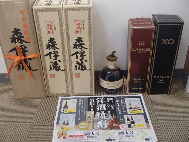 森伊蔵、ブランデー、ウイスキーと次々にお買取いたしました。