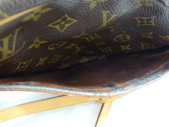 ルイヴィトンのショルダーバッグですが、古いお品物になると写真の様なベタ付がでてしまうお品物もございます。