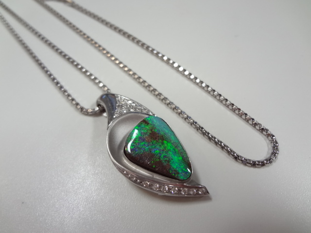 大きなボルダーオパールの付いたホワイトゴールドのネックレスをお持ち頂きました!