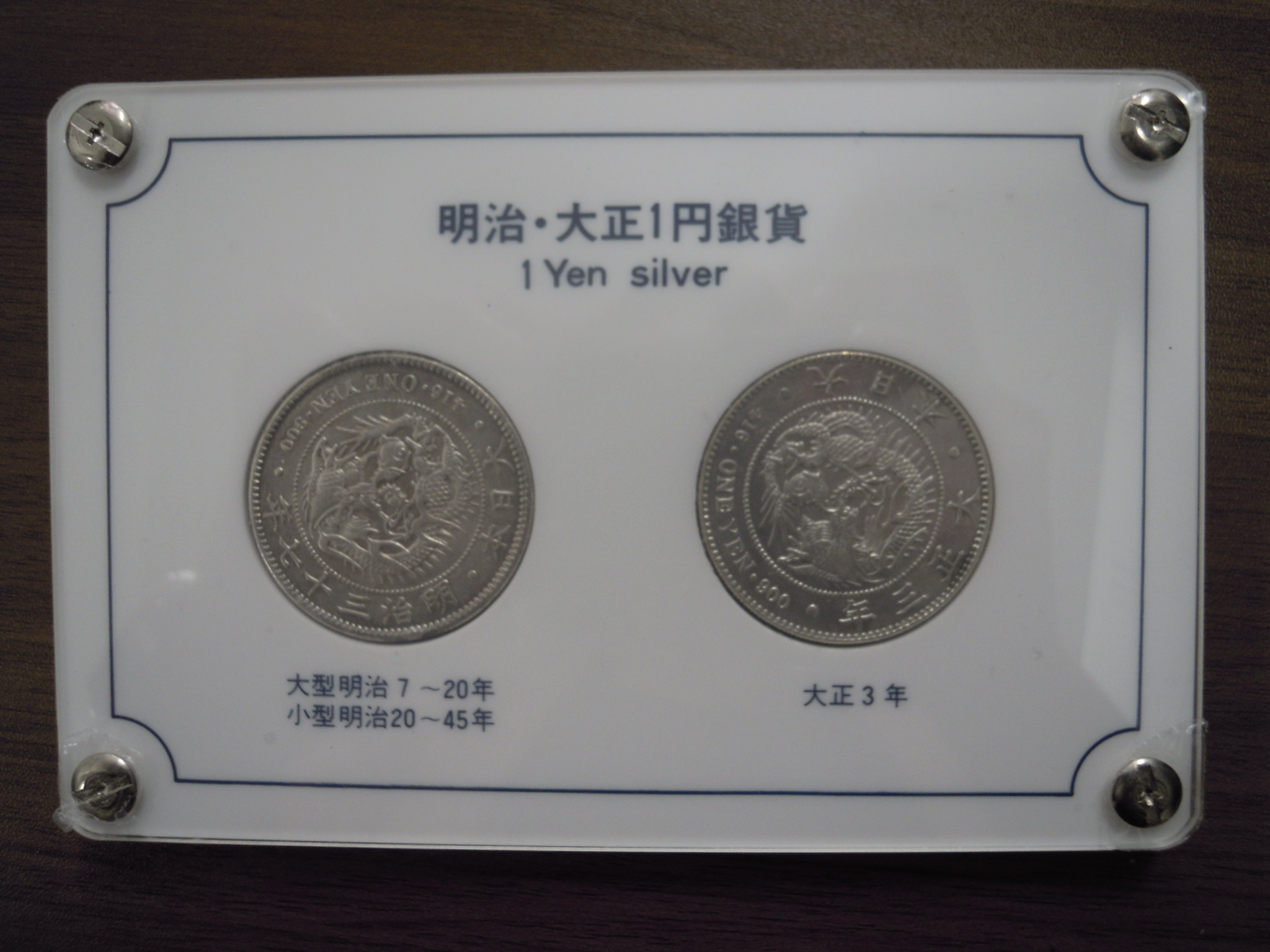 明治37年と大正3年の一圓銀貨がセットになったものです。