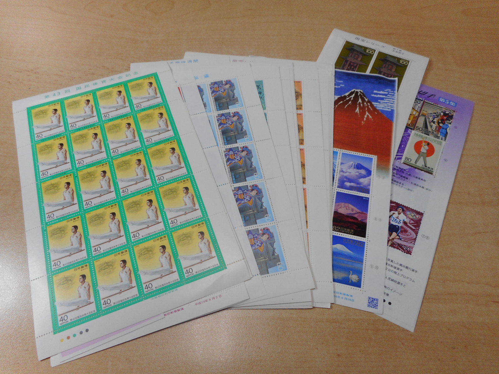 シートやバラの記念切手、普通切手の高換金から