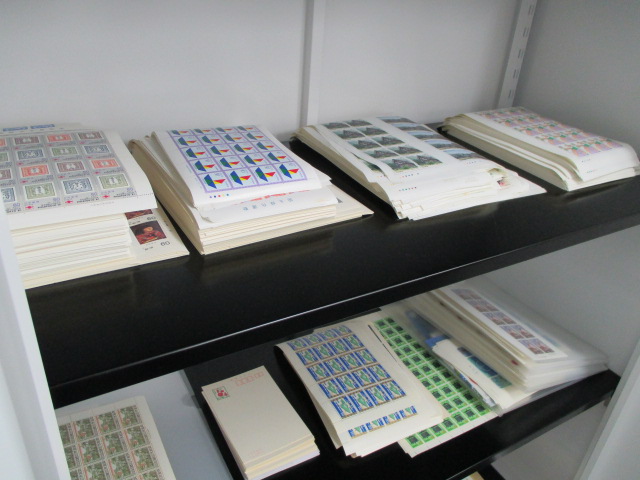 スタッフ一同、枚数を数えるのに手が回らなくなるほどの大量の切手で、当店のキャビネットが