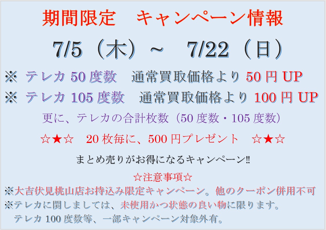 キャンペーン期間残りわずか!お急ぎください! | 伏見桃山店