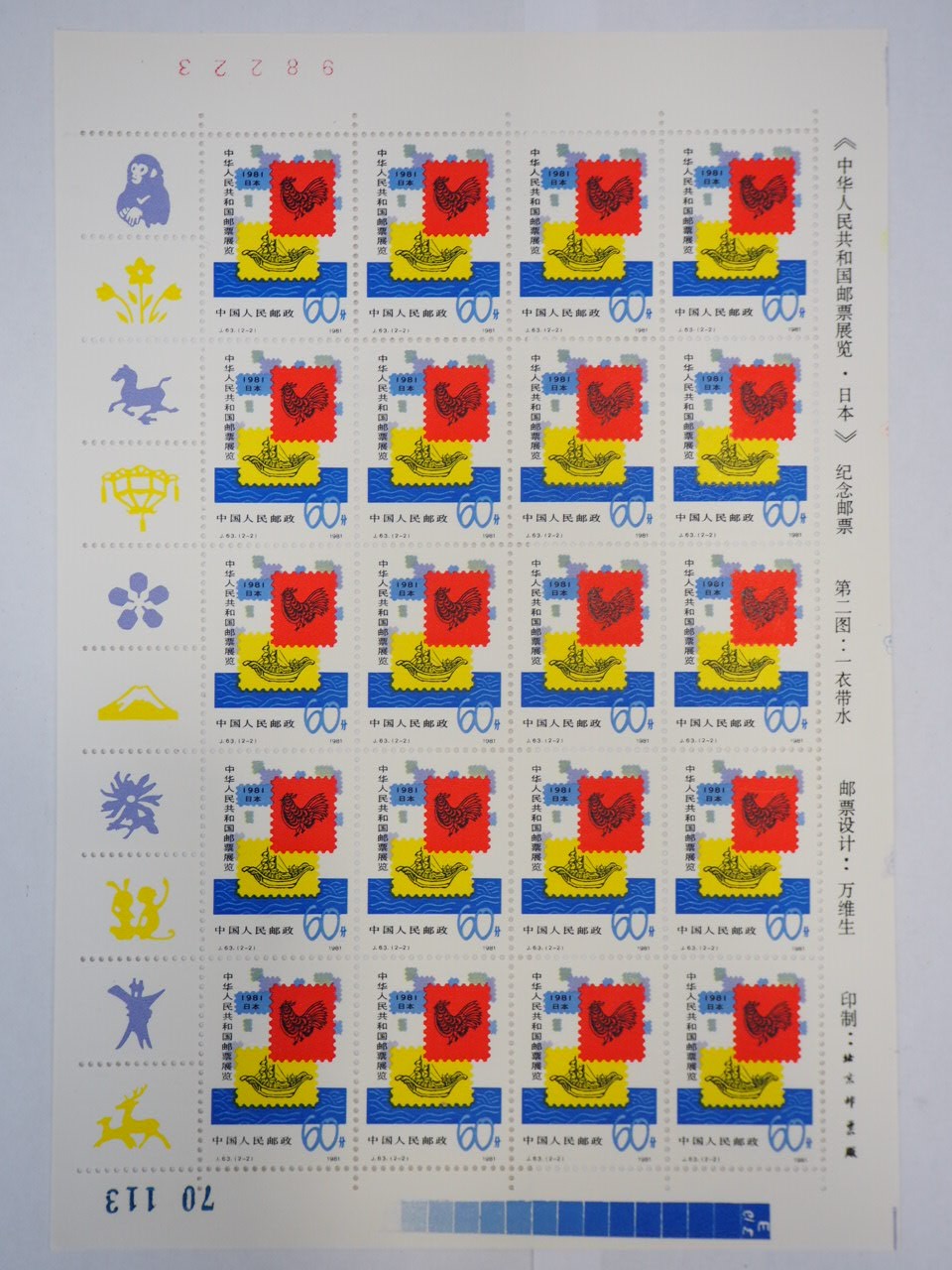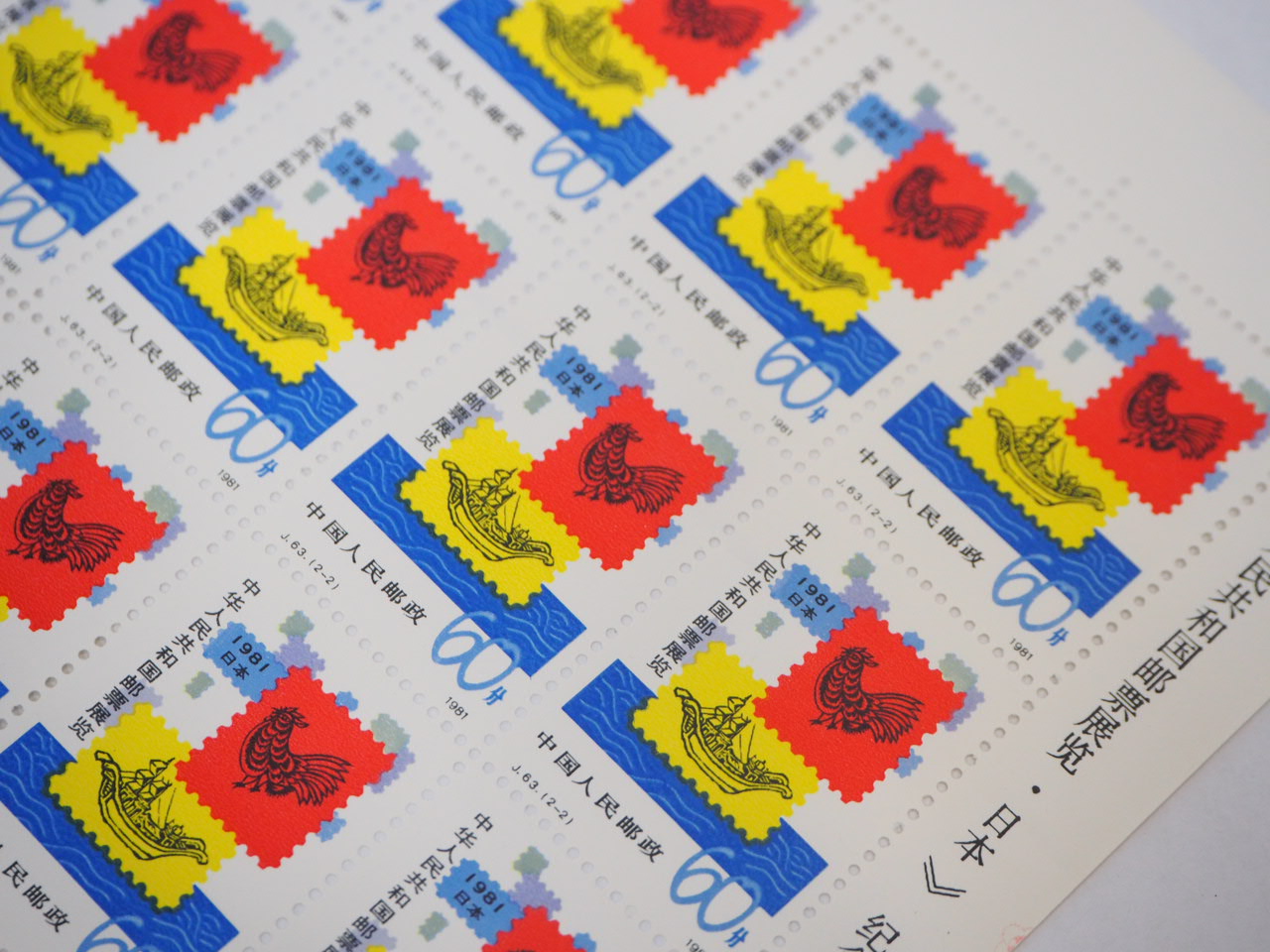 本日の買取商品のご紹介は「中国切手 J63 (2-2) 中華人民共和国切手展・日本開催記念 20面シート」です♪