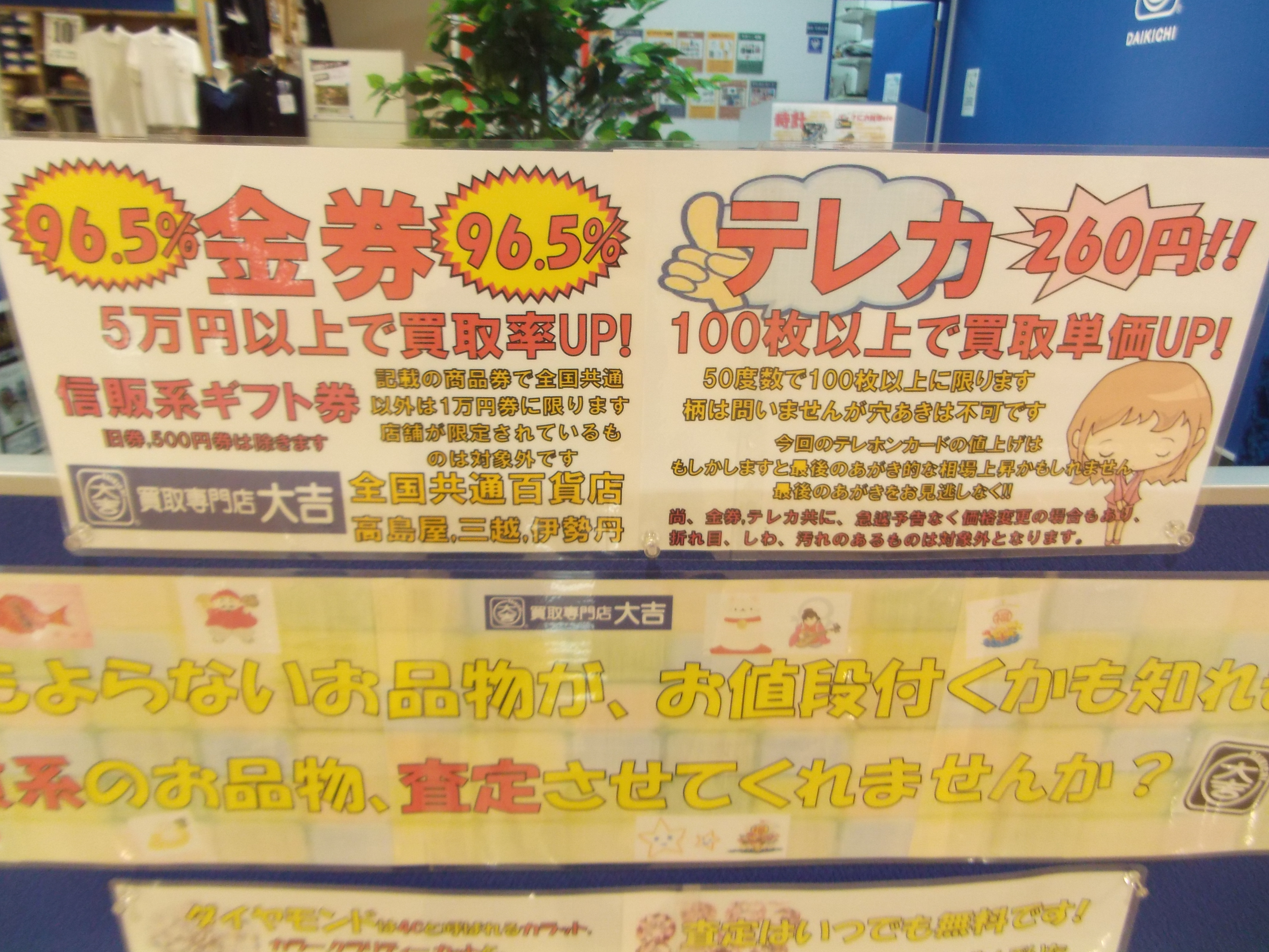 テレカ,一部の金券、買取率UP! 海老名,座間,綾瀬,相模原の質屋、大吉ショッパーズプラザ海老名店です!