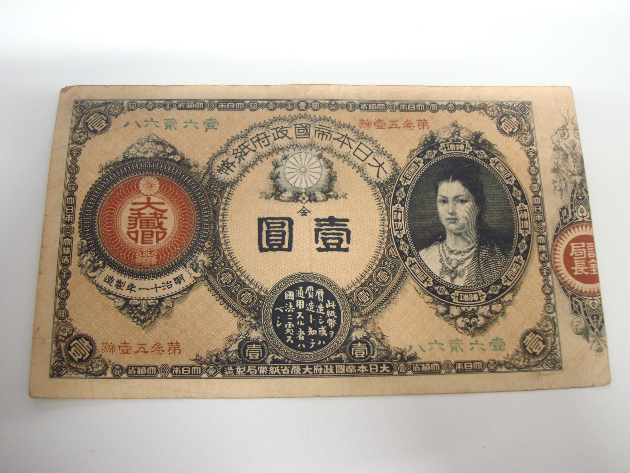 こちらは明治時代の希少な紙幣「神功皇后一圓紙幣」です。
