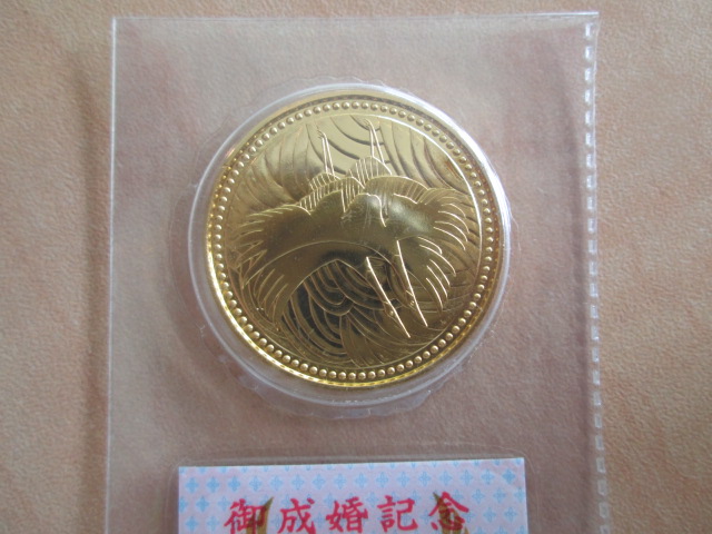 本日のお品、皇太子殿下御成婚記念5万円金貨