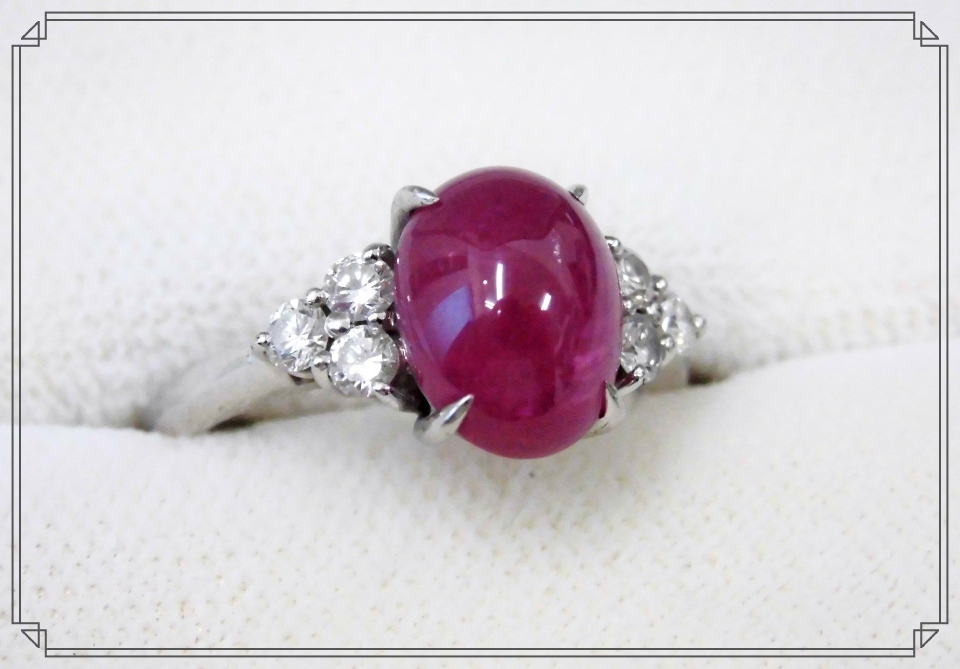 およそ3カラットのルビーと、メレダイヤのついたプラチナのリングです✨