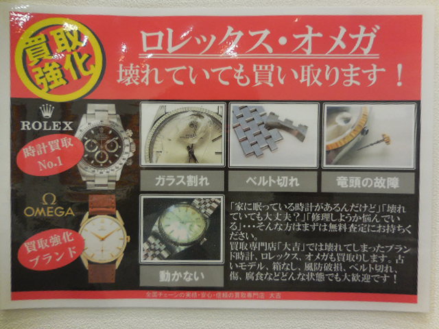 ロレックスやオメガのご査定は、大吉大橋店へ。 | 大橋店