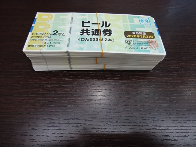 大量のビール券をお買取りさせて頂きました。