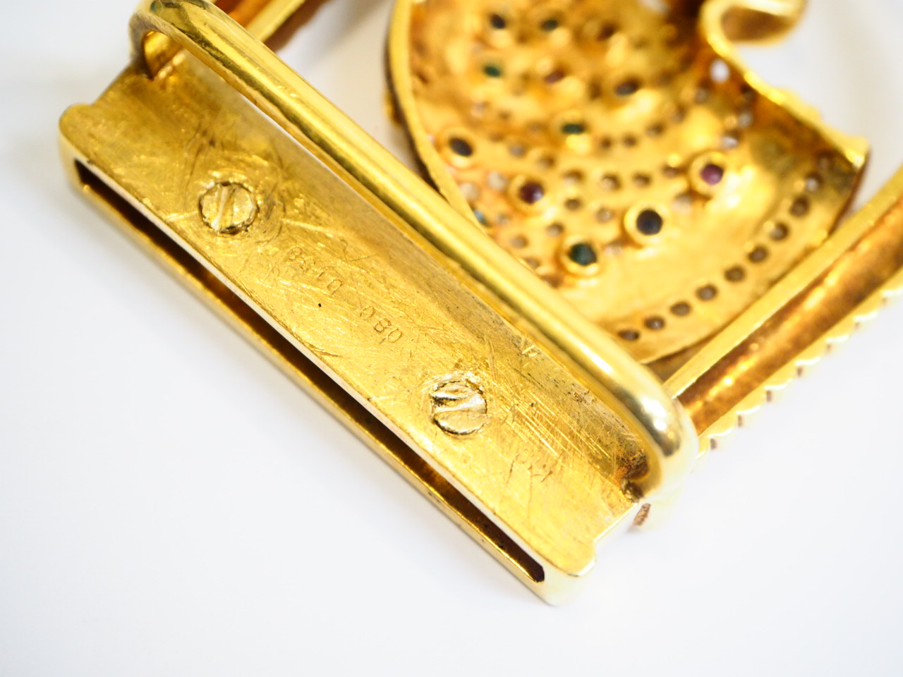 大吉高槻店:「K18 バックル 金 ゴールド 色石0.8ct メレダイヤ1.58ct 重量50.7g」買い取りました。 | 高槻店