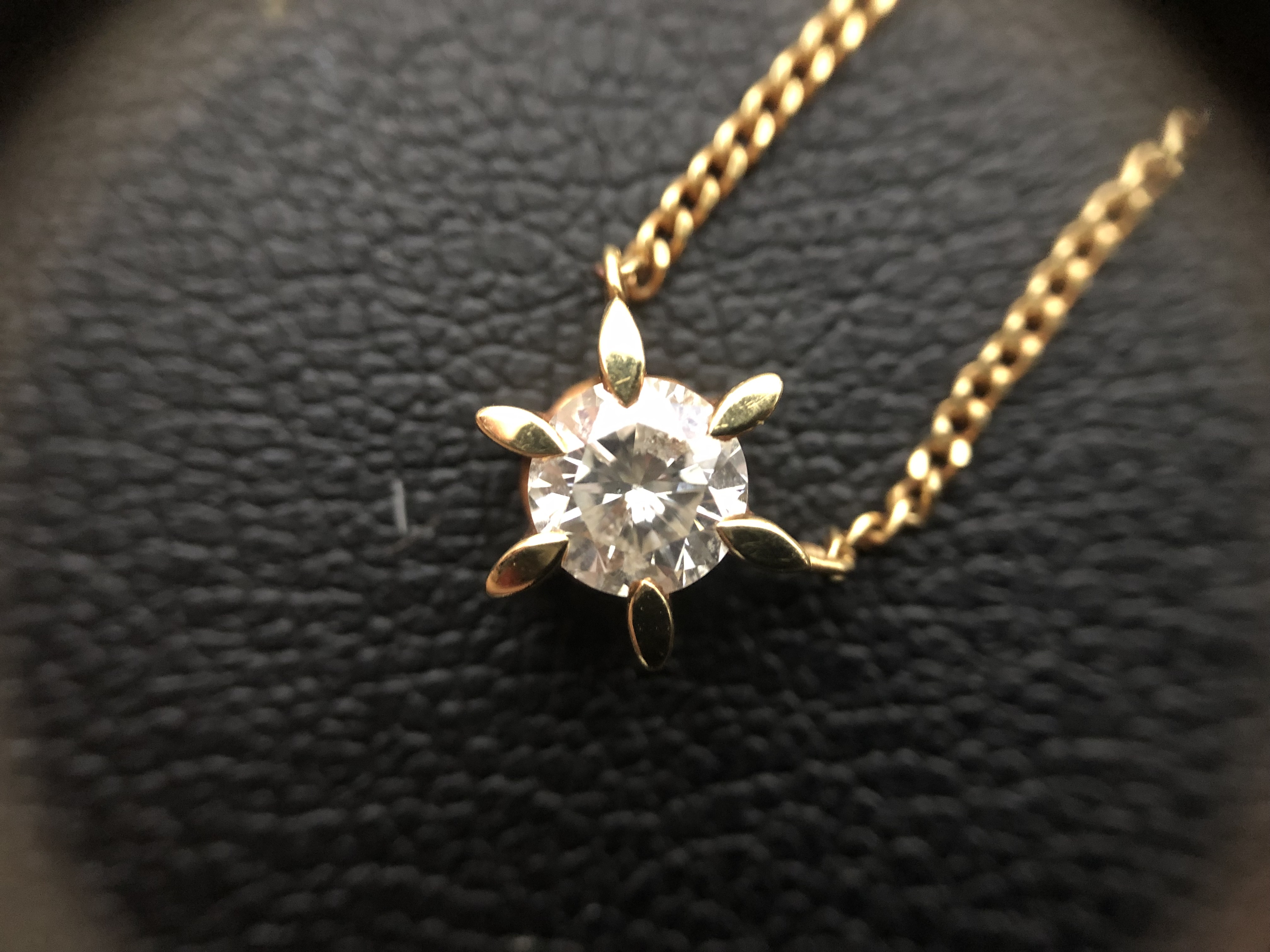 本日はダイヤモンド0.6ctの18金ネックレスのお買取です。