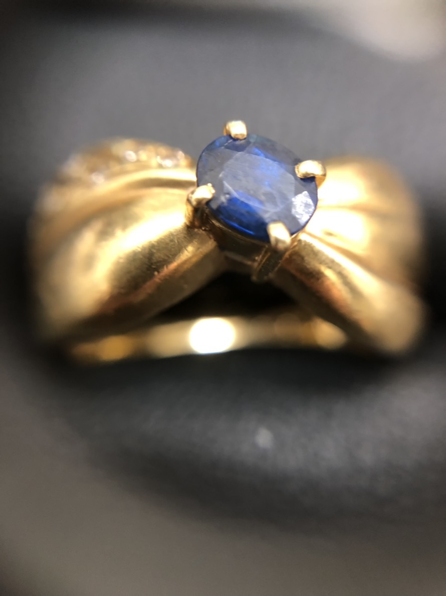 サファイア付のK18リングです。